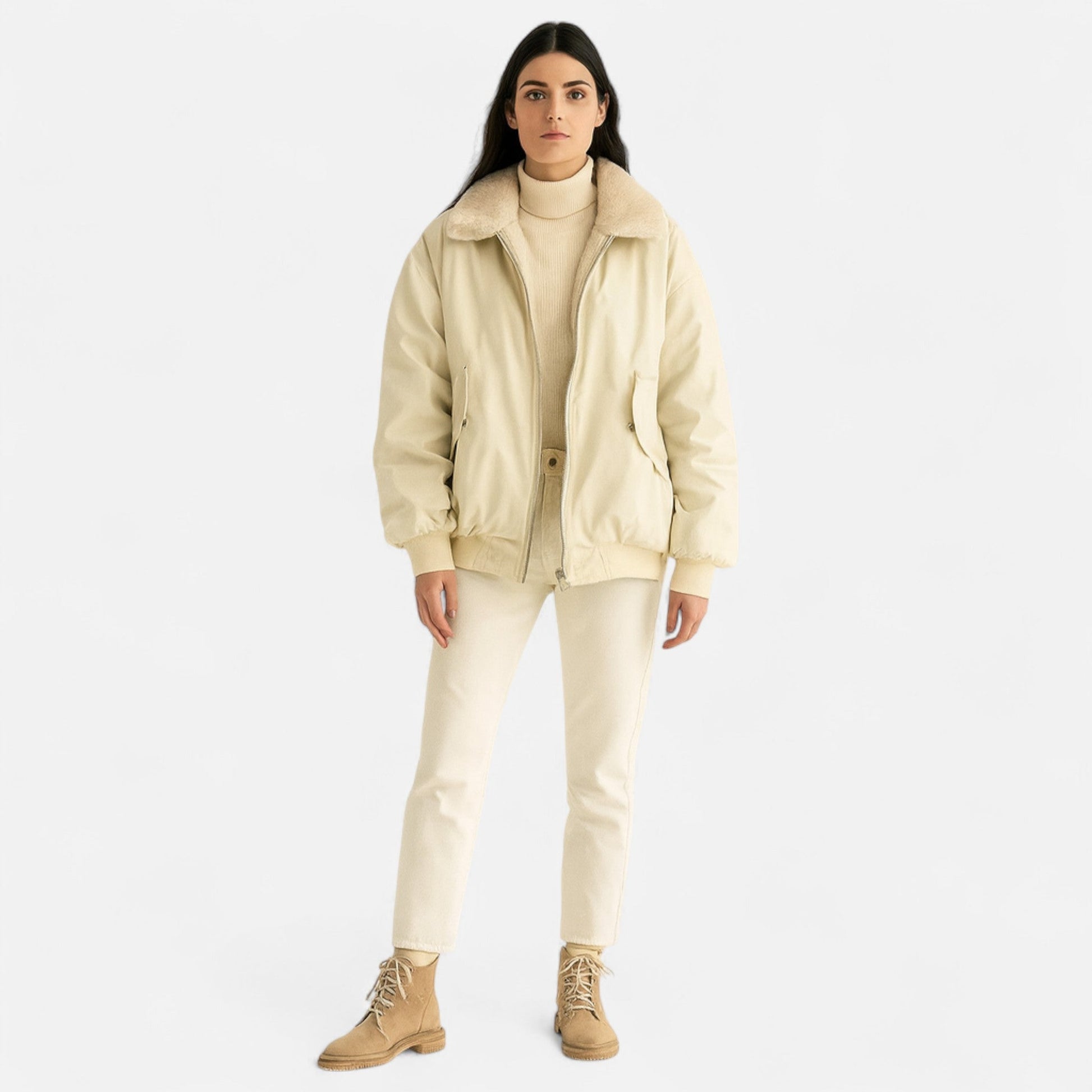 Made from premium insulating fabric, the coat provides lasting warmth while remaining lightweight and comfortable. The oversized cut drapes gracefully, allowing effortless layering without losing its polished structure.